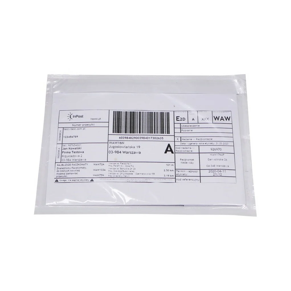 Конверт з самоклеючої фольги (липкої стрічки, кенгуру), призначений для вкладання документів, пов'язаних з відвантаженням, накладних, рахунків-фактур, гарантійних зобов'язань та інструкцій з експлуатації.